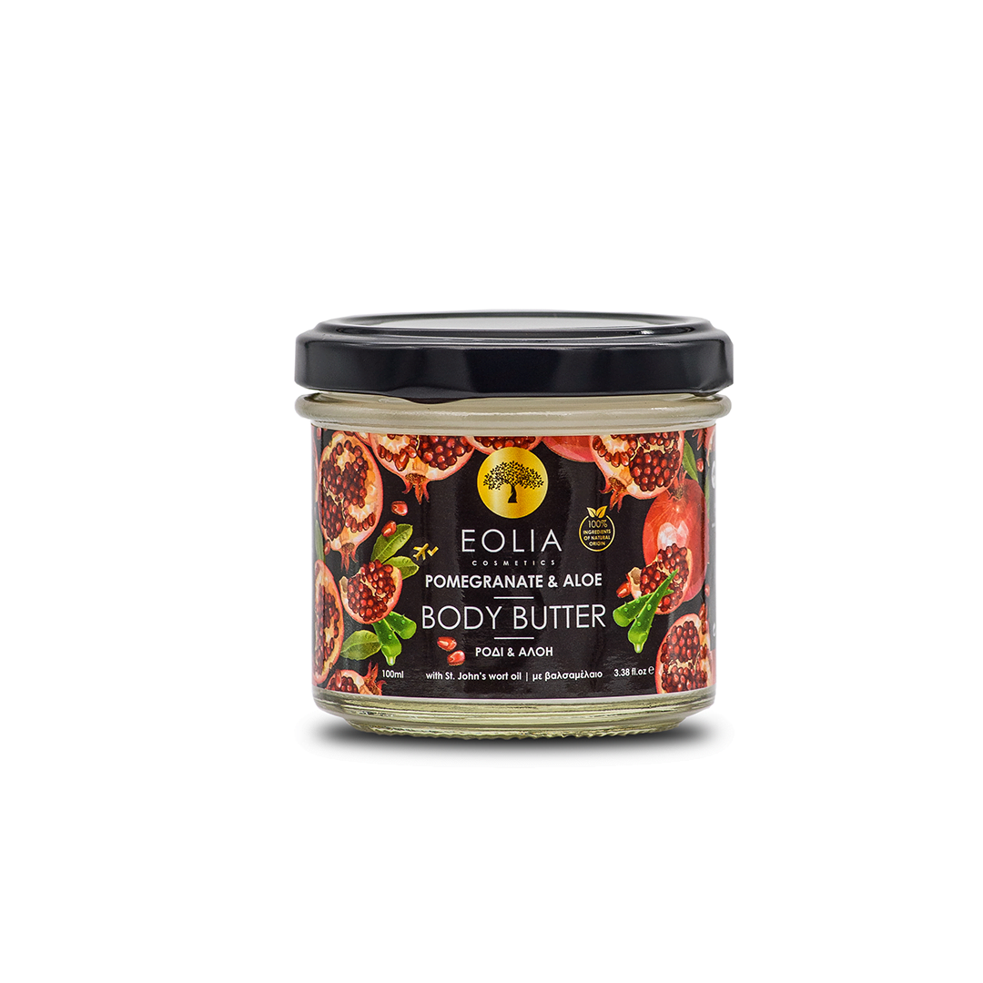 100% Natural Body Butter Pomegranate Aloe with natural Beeswax, St. John’s Wort Oil, Honey, and the most selective fruits and herbs of the Laconic Land in Greece.Moisturizing formula ideal for Sensitive Skin.